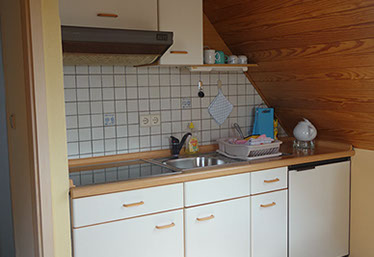 Die Wohnung Abendrot liegt in der ersten Etage des Hause und eignet sich gut für 4 Personen. Sie ist perfekt für einen Familien Urlaub gemacht und in einer idyllischen Küche mit anliegendem Wohnzimmer kann man den Sonnenuntergang genießen während man gemütlich zu Abend isst.