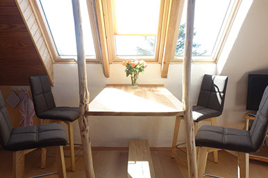 Himmelsläufer ist eine gemütliche Wohnung in der 2. Etage des Hause. Sie ist für 2-3 Menschen ausgelegt und hat einen phenomenalen Ausblick auf die Dünen, das Inseldörfchen und manchmal sogar in der Ferne das Meer. Der Weg zum Strand dauert nur 5 Minuten und wir stellen ein Fahrrad zum einkaufen bereit.